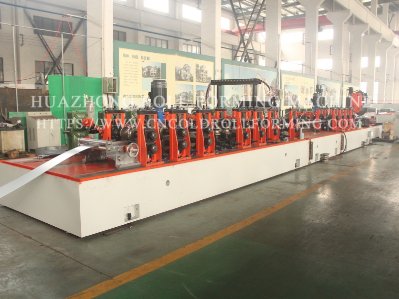 Uncoiler---Feeding guide---Roll forming---Fly saw cutting with servo motor---Run out table